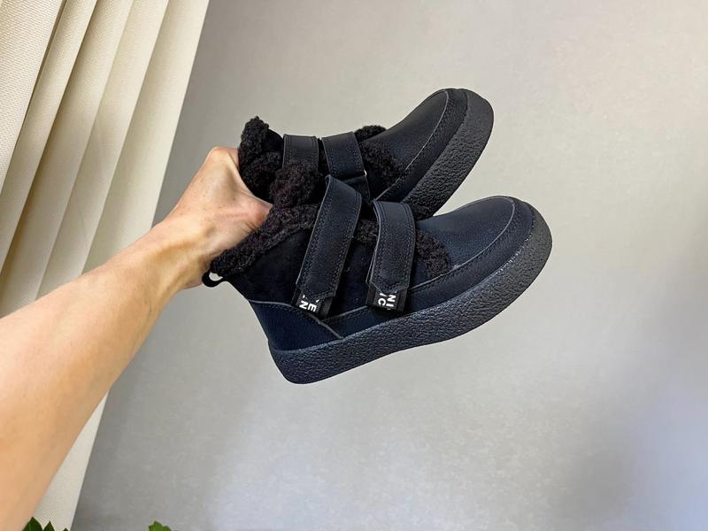 Зимние хайтопы из новой коллекции в базовом черном цвете Качественная эко кожа Утепленные натуральной шерстью 60 % Застежка две липучки,боковая застежка Стильные и легкие 32 размер 20,5 см 33 размер 21.2 см 34 размер 21,8 см (2 шт 35 размер 22,5 см (2 шт 36 размер 23.5 см 37 размер 24 см ЦИНА 1380
