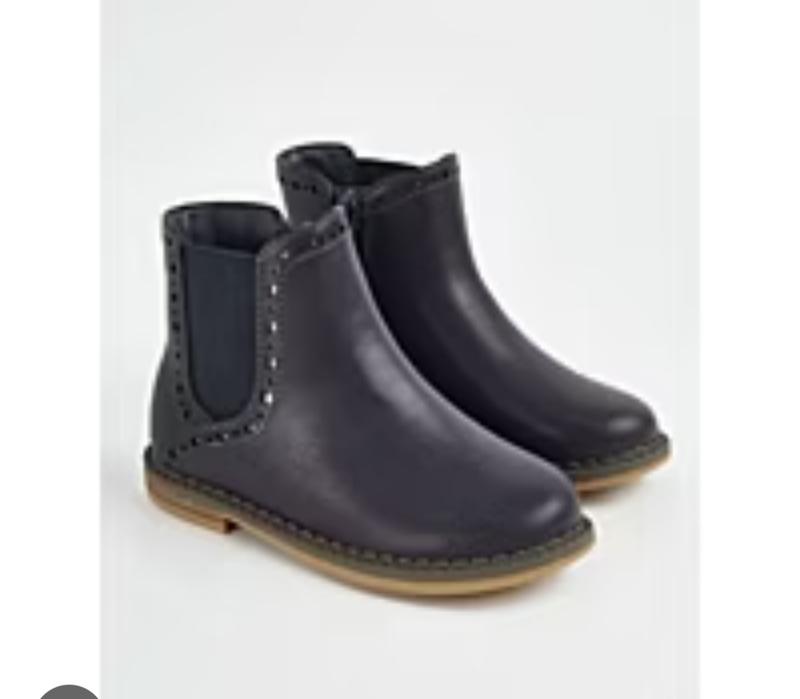 Ботинки на девочку тёмно-синего цвета.По бокам резинки.Застегаются на молнию. Состояние идеальное. Размер указан 31 см. По подошве 21 см. Фото на ноге нет. Пересылка.