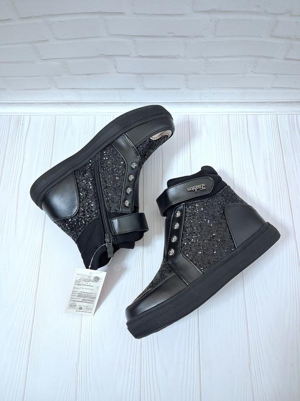 Подам новые демисезонные ботинки на девочку хорошего качества, верх выполнен из качественной экокожи с блестящим прочным глиттерным покрытием, что придает обуви яркий и модный вид. Гибкая подошва комфортна при ходьбе. 🌷 Цвет - черный 🌷 Материал верха - искусственная кожа + глиттер 🌷 Стелька - текстиль 🌷 Застежка - молния/липучка + резинка в подъеме 🌷 Подошва - термополиуретан Размеры по стельке: 32 р. - 19,5 см 34 р. - 21 см (2 пары)