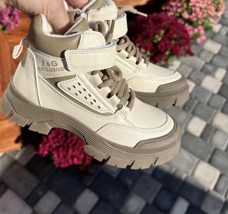 Верх якісна еко шкіра Всередині і утеплені флісом, устілка теж утеплена Мають шнурівку та липучку для фіксації Також боковий замочок Шикарної якості, зручні ! 34р - 22.0 см 35р - 22.5 см 36р - 23.2 см 37р - 23.8 см