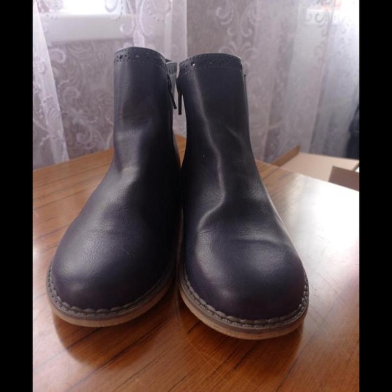 Ботинки на девочку тёмно-синего цвета.По бокам резинки.Застегаются на молнию. Состояние идеальное. Размер указан 31 см. По подошве 21 см. Фото на ноге нет. Пересылка.