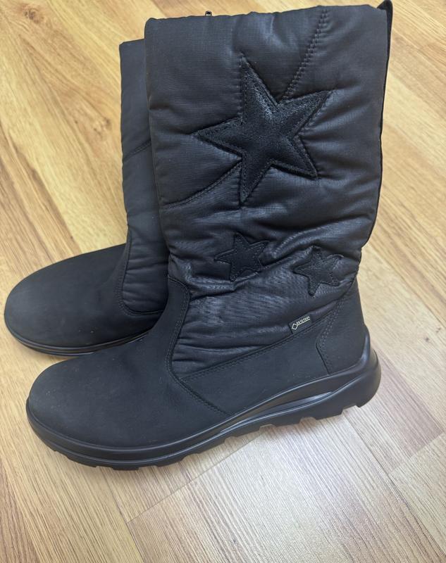 Дитячі черевики ЕССО, (основа нубук ), по устілці 23,5 мембрана gore-tex захищає від вологи утеплені. Не скривлені і не вигнуті.