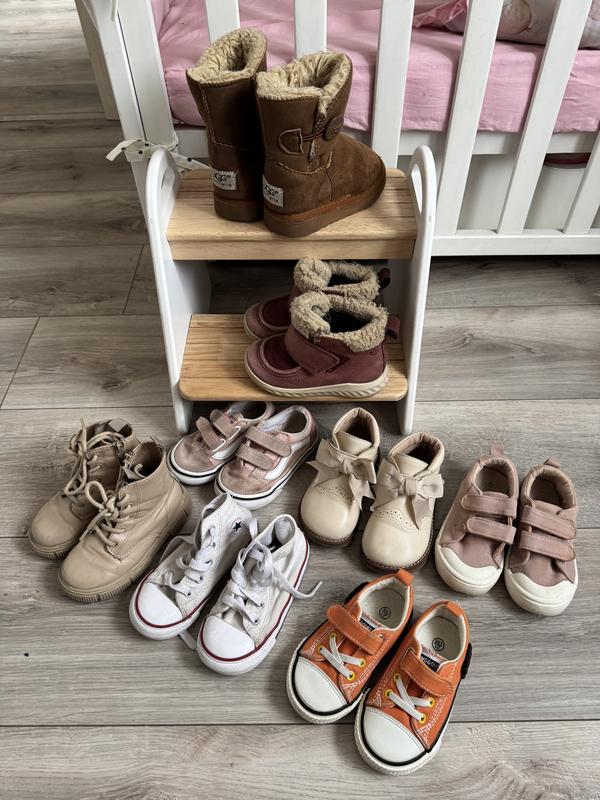 1. Уггі Ugg, всередині на овчині, стан дуже хороший, дуже теплі, на ніжку 14-14,5см-315грн 2.Зимові термоботинки Ecco, стан близький до ідеального, натуральна шкіра, непромокаючі, устілка приблизно 15,4см-890грн(купувала за 2500грн) 3.Ботинки бежеві Zara, 14,5см+-, натуральна шкіра, збиті носки-150грн 4.Кеди Converse, 15см+-, стан на 4/5-200грн 5.Кеди Vans, 15см+-, втратили колір, без дірок, липучки працюють-безкоштовно. 6.Рожеві кеди та помаранчеві, 14,5см-по 100грн 7.Ботинки бежеві з бантом (дивіться в окремому оголошенні) За більш детальною інформацією в особисті. Надам точні заміри та фото.