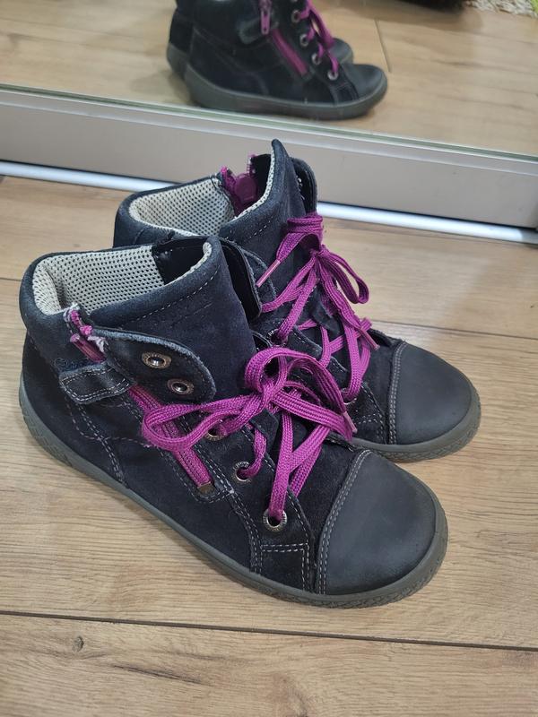 В нормальном состоянии, после ребенка, без нюансов, длина стельки 19см, за счет шнуровки можно регулировать полноту, есть молнии и липичку, ребенок сам сможет надевать. Натуральный замш и нубук.