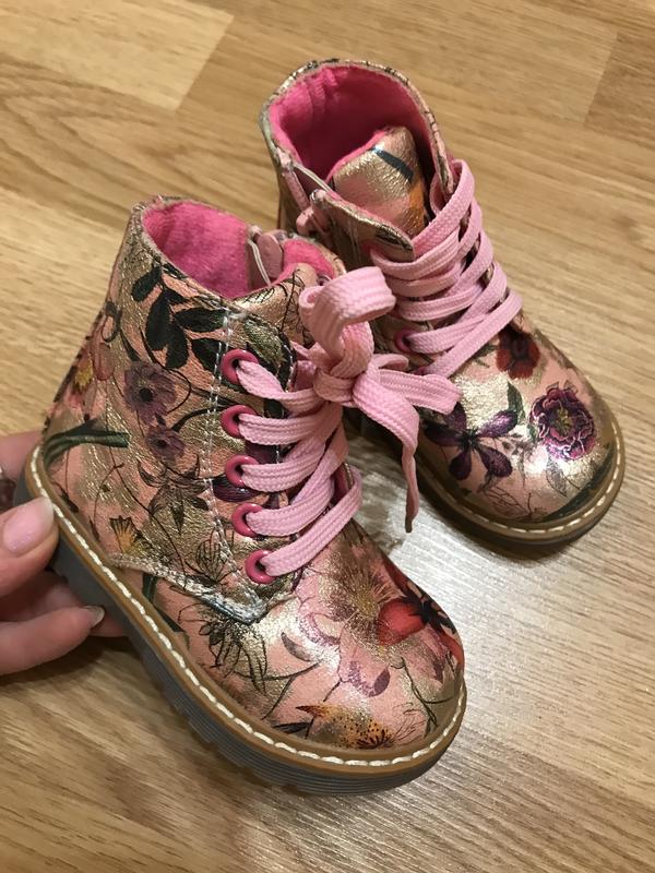 Дитячі яскраві чобітки, всередині текстиль. Мають шнурівку та замочок . Розмір 22-13 см.