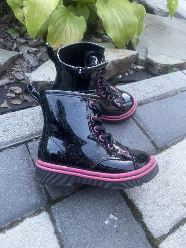 Розмір: 23 (устілка 13,5см) ✔ Стан: ідеальний ✔ Матеріал: лакова екошкіра, всередині теплий фліс ✔ Колір: чорний з рожевими вставками ✔ Зручна модель на блискавці та шнурівці ✔ Легкі, стильні, підходять для осені та весни 💰 Ціна: 420 грн