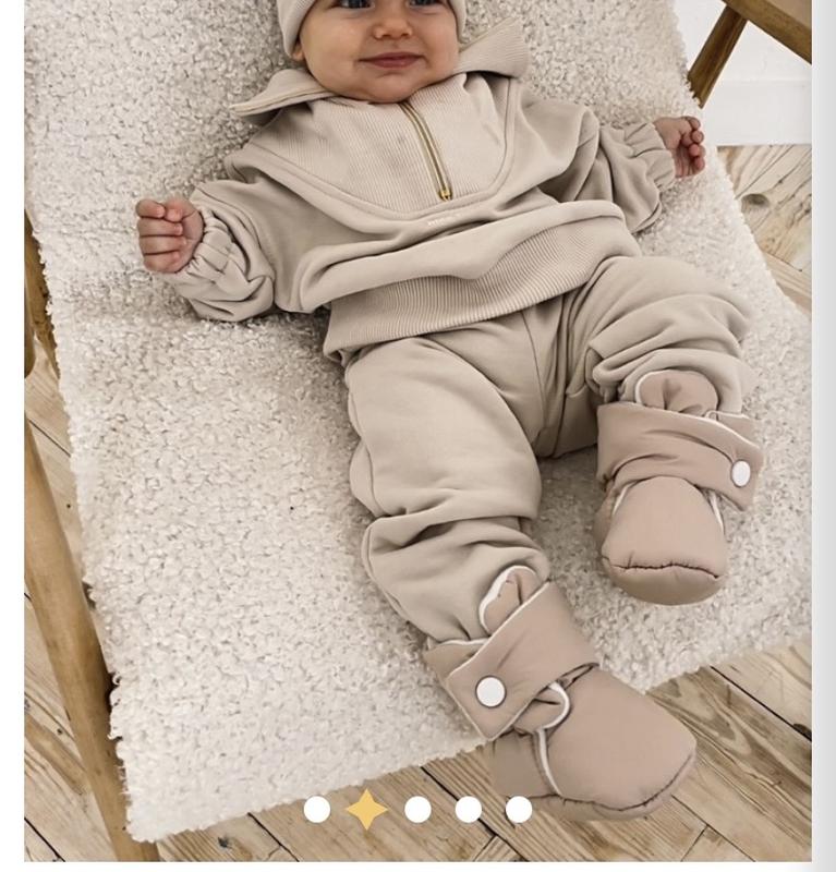 Чобітки-пінетки зимові/холодна осінь Розмір на 6-12 місяців Ідеально підходить для малюків, що ще не ходять і супер легко та швидко одягається. В ідеальному стані. Для дівчаток та хлопчиків, нейтральний бежевий колір. Склад - 100% поліестер Матеріал - Плащівка Підкладка - Фліс Застібка - Кнопки Утеплювач - Силіконізований синтепон Сезон - Осінь/Зима