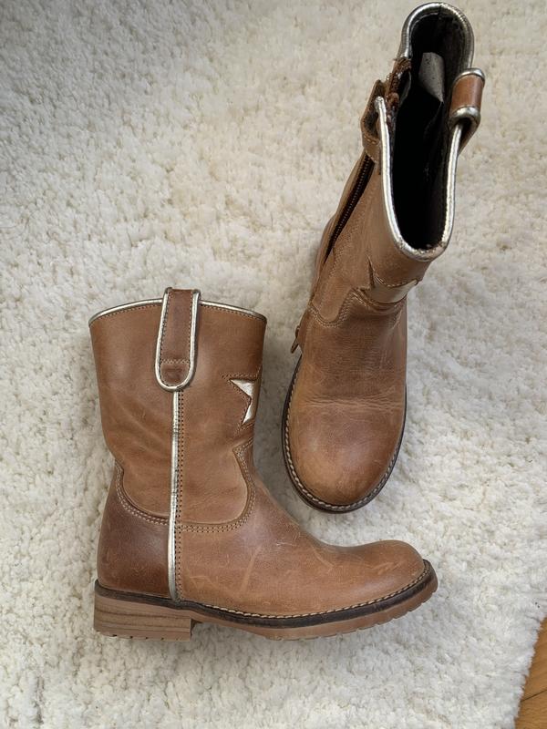 Сапожки на девочку, кожаные внутри и снаружи. 28 размер (18 см стелька). Сбоку на замочек. Полностью новые!