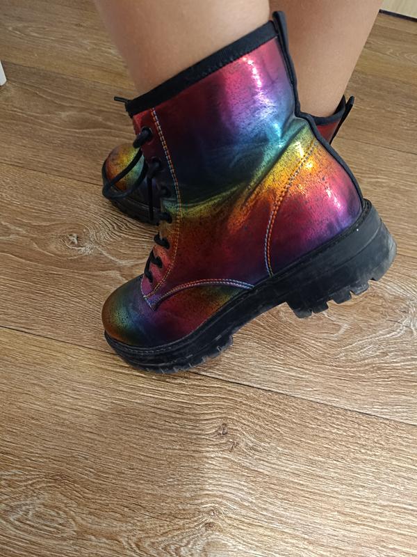 Ботинки в хорошем состоянии. Есть незначительные потертости, но учитывая окраску, то совсем не видно. В другом состоянии идеал.