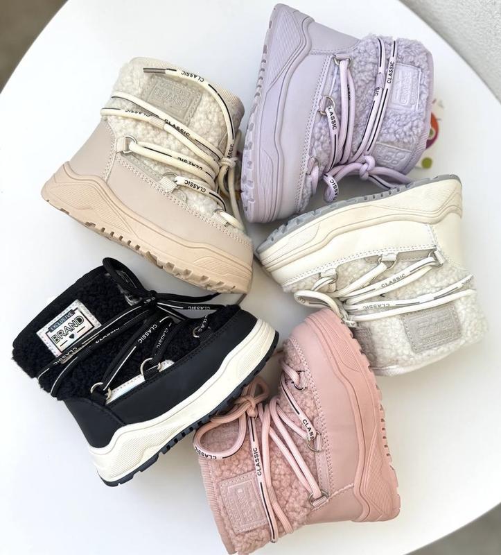 Ззовні якісна еко-шкіра з комбінацією штучного хутра Тедді Не пропускають вологу та холод Збоку є блискавка Утеплені хутром (65% натур) Розміри 22-27