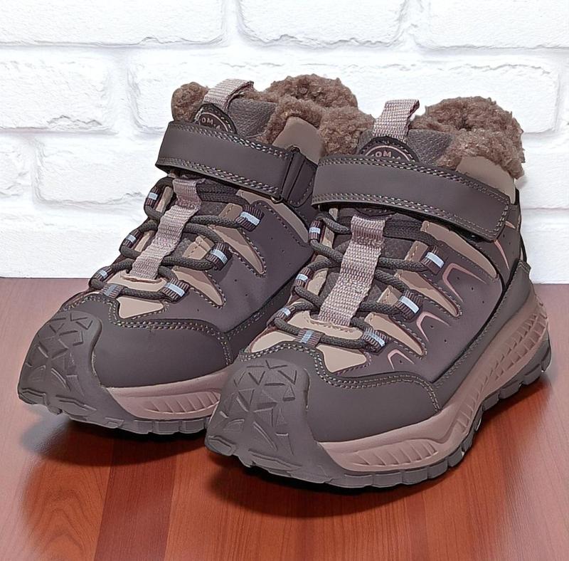 Зимние ботинки хайтопы для девочки овчина, на липучке 11762f purple том м