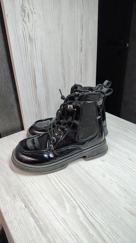 Лаковые качественные ботинки,мы отходили один сезон. Утепленные велюром, стелька кожаная.