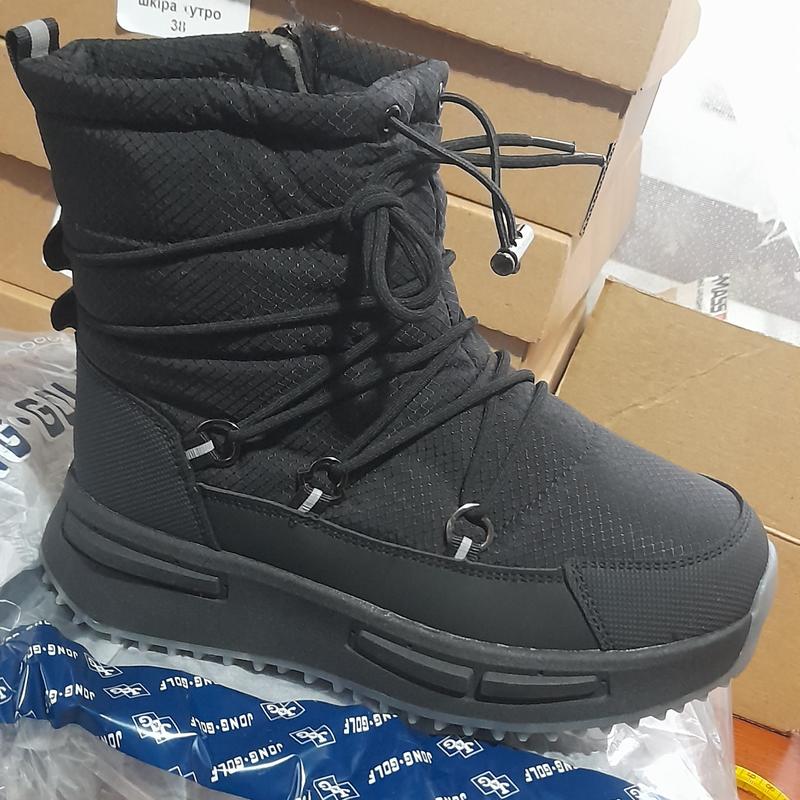 Детские зимние дутики Замеры произведены внутри: 34 р- 21,5 см 35 р- 22 см Можлива похибка +/- 1-2 мм. Материал верха обуви: Кожа.заменитель+термоматериал Внутренний материал обуви: Искусственный мех. Тип застежки: Молния/Утяжка Цвет: Черный Подошва- Резина