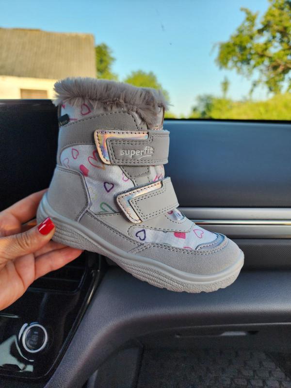 НОВЫЕ высокие зимние термоботинки Superfit Crystal Оригинал из Англии разм.27. полная длина стельки 17.8см, ширина 6.3см Полнота М (на узкую и среднюю ножку) Чудова полегшена зимова модель! Они легкие, но теплые, с мембраной gore-tex, которая всегда оставит ножки сухими. Superfit – это марка номер один компании Legero. Основанная в 1875 году, в настоящее время фабрика Legero является одной из лидирующих обувных фирм в Европе Вся обувь считается анатомически правильной, с соблюдением всех требований для этого возраста. Рекомендуемые врачами-ортопедами Европы - Сезонность: от +8 до -10. если ребенок активный, то можно и всю зиму надевать - Высота ботинка 19см, высота подошвы 2-2,7см - цвет: серый/серебро - верх: разнофактурные синтетические материалы - внутри искусственный мех с добавлением шерсти (как овечка) - использованная мембрана GORE-TEX, которая позволяет обуви быть непромокаемой и обеспечивает хороший воздухообмен, чтобы ножка не потела - застежка - 2 липучки - вшита водонепроницаемая мономовая, чтобы влага не попадала внутрь - съемная утепленная стелька, прямая - в пяточной части стабилизатор, чтобы максимально хорошо фиксировать голеностоп, во избежание травм