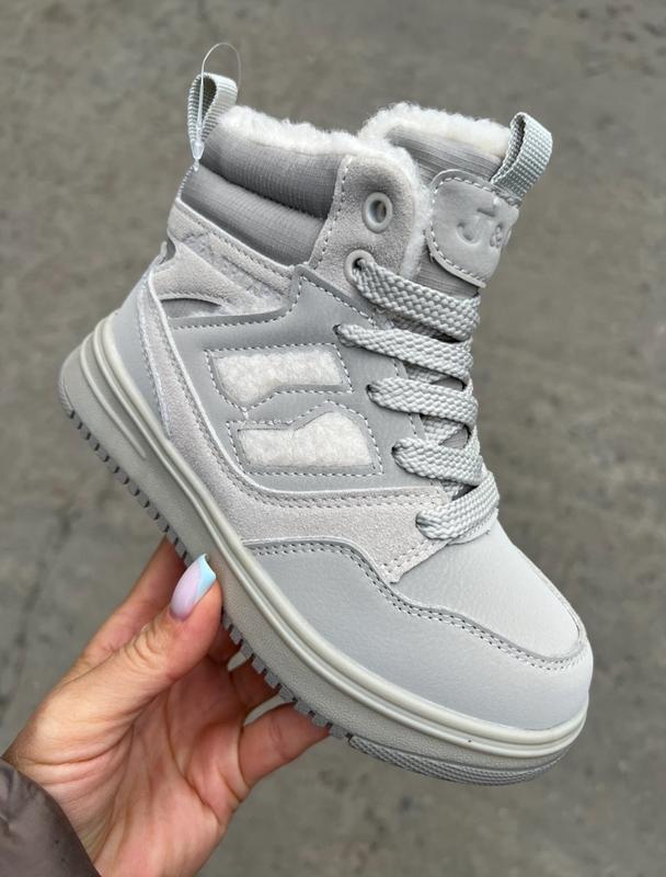 Теплые зимние ботинки цвет светло-серый внутри натуральный теплый мех овчины