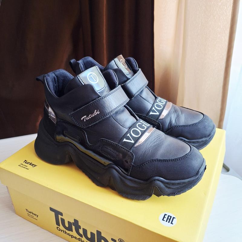 В идеальном состоянии. На улице почти не были, обуваться в школу. Не парят ножки, без запаха пота! Износостойкие. Ортопедическая/профилактическая обувь! Трендовые, высокая подошва. Очень крутые и удобные Доньяки купили такие же. Стелька 24.5 опис Демисезонная обувь дарит комфорт в использовании и приковывает взгляды окружающих. Обувь на осень изготовлена из натуральной кожи (присущенные вставки из нубука и лаковой кожи). Внутренняя часть обуви утеплена флисом, удерживает тепло в холодную погоду. Массивная подошва из термоэластопласта препятствует скольжению, защищает стопу от повреждений и обеспечивает хорошее сцепление с твердой поверхностью. Фиксация с помощью липучки позволяет надежно закрепить обувь на ногах. Жесткий задник фиксирует пятку и голеностоп, предотвращая появление растяжения и вывихов.