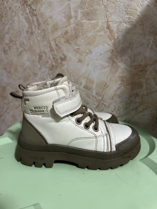 Гарний стан, не промокають, дуже зручні, теплі, відходила зиму , хутро вовна , розмір 32 Можливо 🤔 підійде і хлопчику Є замок 19.5 см устілка