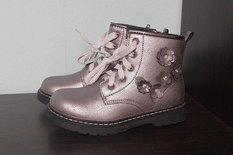 Отличные деми ботиночки, легкое утепление, цвет серебристый с милыми цветками. Размер 30 стелька 18,5см (возможна погрешность +-0,2мм).