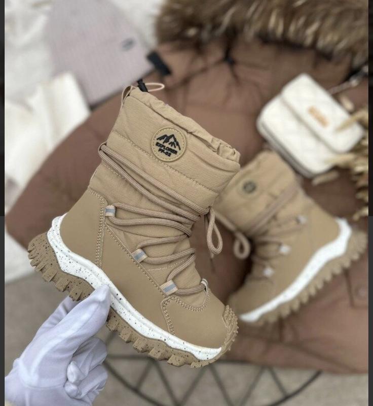 Дуже класні дутіки на зиму унісекс. Матеріал верху водонепроникна плащівка, класна тракторна підошва щоб не було слизько в зимку. Всередині на теплому хутрі. Зверху є утяжка, збоку замочок-розширювач для зручності обування. Якість супер Доступні розміри: 27-18,4 см 28-18,8 см 29-19,5 см 30-20 см 31-20,5 см 32-21 см Мд