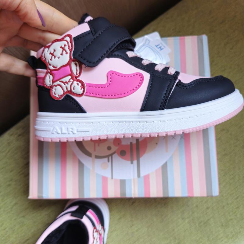 Новые ботинки для девочки, размер 28, 18.5см стелька. Стильный цвет черно розовый, сбоку нашивки в виде мишки. Внутри тепленький, мягенький флис. Шнуровки-резинки, застежка на липучке. Легко и удобно надевать и снимать. Цена 1050грн
