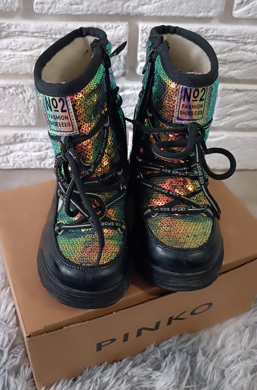 Дитячі черевики 30-31 рр. Довжина устілки 20 см. На овчині, теплі.