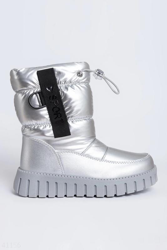 Чоботи дутиші для дівчаток Бренд: Канарейка Країна виробник - Китай Колір - сріблий Матеріал верху - екошкіра, плащівка Застібка- утяжка, змійка Утеплювач - хутро Устілка - хутро, супінатора немає Підошва - ПВХ, висота 3.5 см Висота чобота 21 см Розмірний ряд: 32-37 розмір Заміри: 32 розмір 20.5 см 33 розмір 21 см 34 розмір 21.5 см 35 розмір 22.5 см 36 розмір 23 см 37 розмір 23.5 см