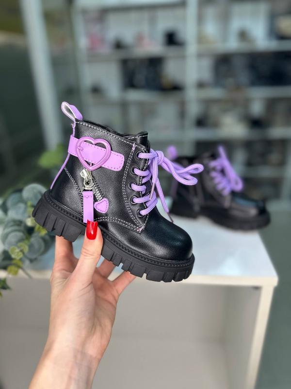 Осенние деми тимбы для девочек🍂 У нас есть в двух цветах: 💜Фиолетовые сердечки 🤎Молочные сердечки Верх - экокожа Внутри утепленные плюшем, стелька тоже утепленная👌 Пяточка твердая, будет отлично держать ножку. Присутствующий боковой замочек ✅ Объем можно подтянуть шнуровкой Подошва красиво гнется Замер внутри, стелька не вынимается Размеры: 27р - 16,3 см 28р - 16,8 см (2) 29р - 17,5 см (2) 30р - 18 см (2) 31р - 18,7 см 📏 Замеры выполнены вручную, возможна погрешность 1-2 мм. 🚙 Открытка в течение 1-2 рабочих дней Укр и Новой почтой. 💳 Наложенный платеж по предоплате 150 грн