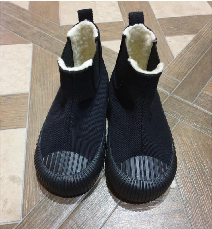 Новые демисезонные ботиночки, снаружи плотный джинс, внутри полностью на овчинке, носок прорезиненный, очень лёгкие и мягкие, подойдут и на высокий подъём, стелька 17 см