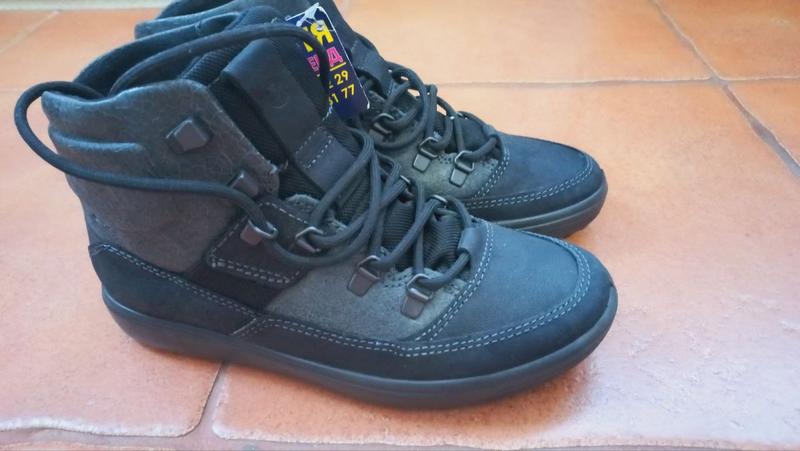 Продам ECCO SOFT 7 TRED. Новые, с биркой. Ребенку подарила бабушка, а ножка за лето выросла. Длина стельки от ушиба 22 см. Это универсальные, современные ботильоны с гладкой отделкой, черного с темно серым цветом. Они выполнены из комбинации кожи ECCO TEXTURED ANTELOPE YAK, изготовленной в собственных кожевенных заводах бренда, и кожи ECCO TECTONIC LUUM, которая отличается потрескавшейся отделкой и отражающими элементами. Особенности модели: водоотталкивающий процесс HYDROMAX защищает верх для всепогодного использования FLUIDFORM — это процесс прямого впрыска, в котором используются жидкие материалы, чтобы следовать нашим уникальным анатомическим свойствам и создать наиболее удобную основу для вашей обуви и долговечность при любых погодных условиях.
