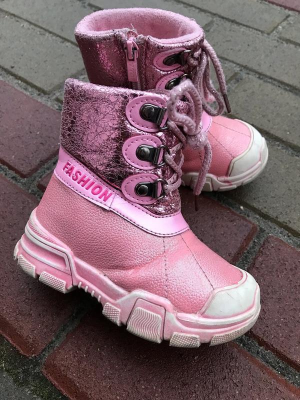 Зимние ботинки 24 размер -15 см Для производства использована комбинация кожзама и водонепроницаемого материала. Утеплены искусственным мехом. Подошва у сапожек из резины и пены тому. Ребенку будет очень комфортно, и ноги будут в тепле. Сбоку молния, спереди шнурок