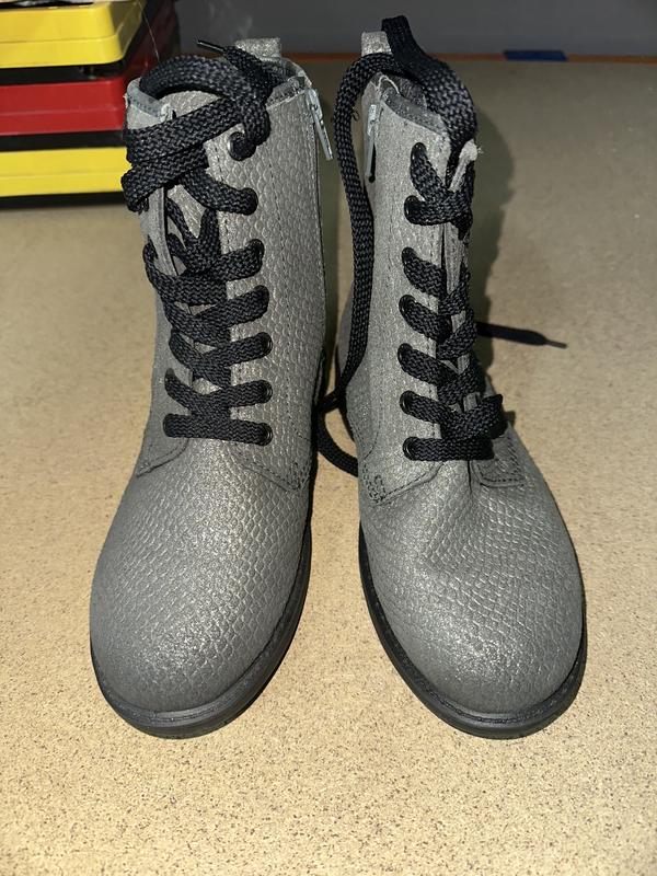 Черевики для дівчат колір т.сірий, на шнурівки та замок, шкіра, всередині утеплені