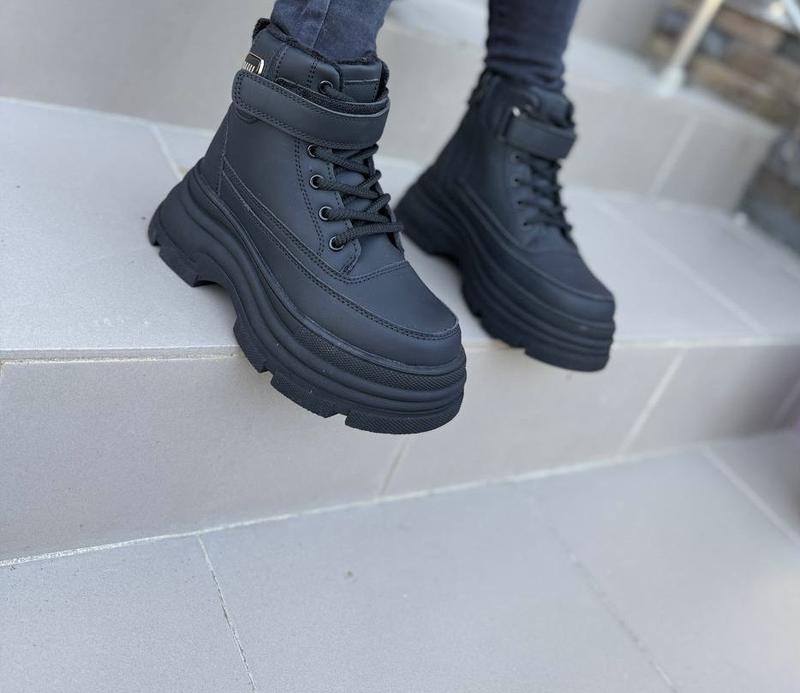 Ззовні еко шкіра дуже хорошої якості Всередині натуральна овчина в комбінації із штучним хутром (60/40) Є липучка та боковий замочок для легкого взування Морозостійка підошва, що не буде ковзати Дуже легкі та зручні незважаючи на масивну підошву Розміри в наявності: 32р.-20,7 см 33р.-21,5 см 34р.-22,0 см 35р.-22,8 см 36р.-23,5 см 37р.-24,0 см