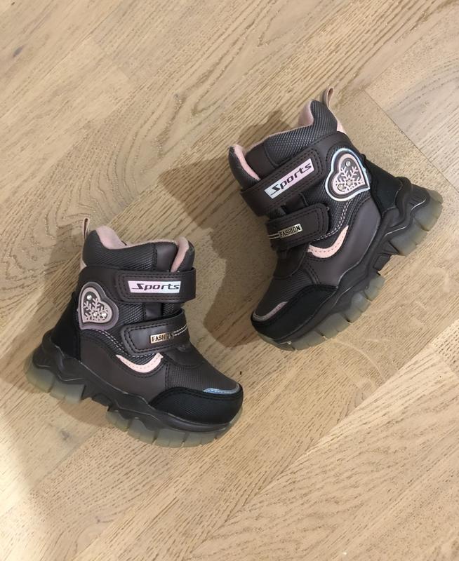 Дуже теплі зимові черевички на дівчинку всередині з хутром і товстою підошвою, дуже зручні. Стан супер, одягаються дуже зручно. На підошві вказано 23, але фактично маломірять на розмір.