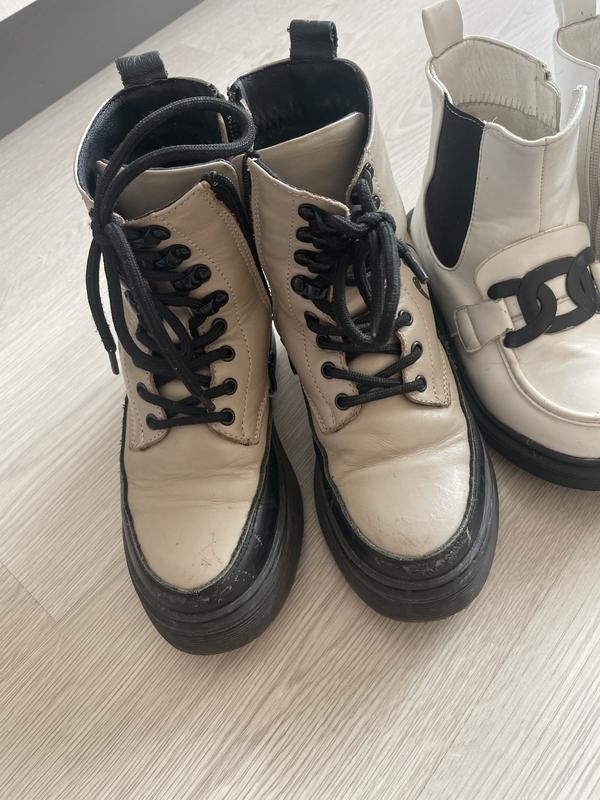 Білі розмір 33 Коричневі 32 але як на мене то йде на 33 Трішки здерті носочки