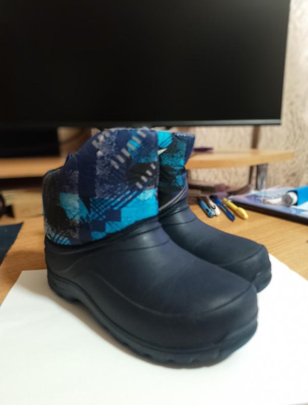 размер: 30; стелька 20см. сапоги из пенного материала. легкие, водонепроницаемые, на флисе внутри. б/в.