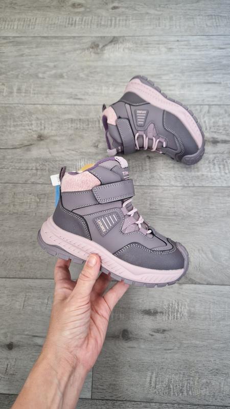 Зимние ботинки для девочек фирмы Tom.m Артикул: 11765F Сезон: зима Цвет: сиреневый Материал внутренний: мех смешанный состав 70% овчина Материал наружный: плотная качественная эко кожа, termo материал снаружи. Зимняя протекторная подошва, которая не будет скользить. Застежка: шнуровка/липучка " 28р. по стельке 18,0 см (в) 29г. по стельке 18,7 см 30р. по стельке 19,5 см 30р. по стельке 19,5 см 31р. по стельке 20,0 см 31р. по стельке 20,0 см 32р. по стельке 20,7 см 33р. по стельке 21,5 см