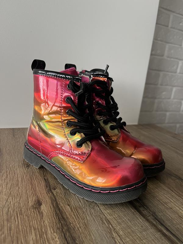 Черевики чоботи демісезонні для дівчинки 26 розмір глянцеві різнокольорові