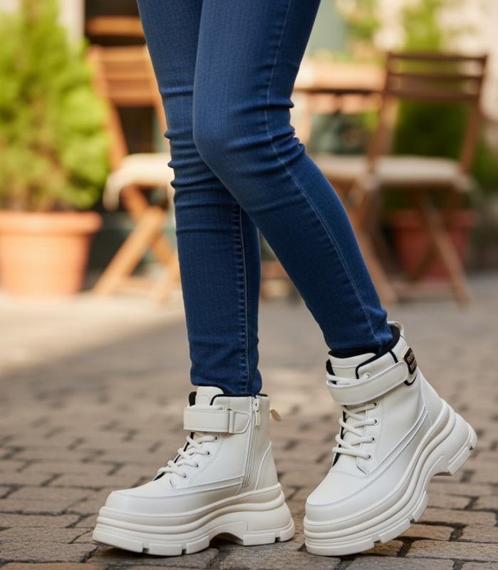 Матеріал верху – екошкіра Підкладка – овчина (змішаний склад) Устілка-овчина (змішаний склад) Застібка-липучка, блискавка,шнурівка П'ята-жорстка Підошва-прорезинена, ззаду 5,5 см 32- устілка 20,7см 33- устілка 21,5см 34- устілка 22см 35- устілка 22,5см 36- устілка 23см 37- устілка 24см