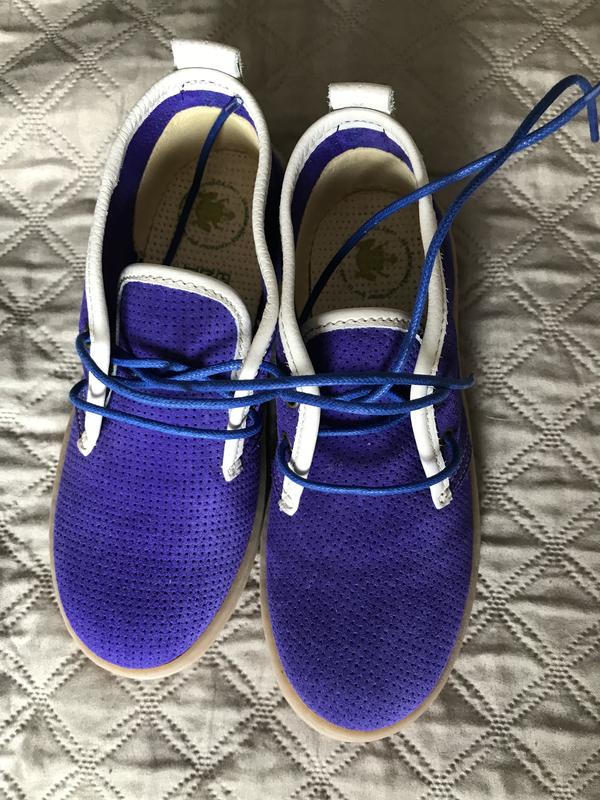 Дитячі черевички з натуральної замші. Повністю натуральний матеріал, структура в дірочку, дихаючі, неслизька підошва. Розмір вказано 30, довжина устілки 19,5 см. Нові.