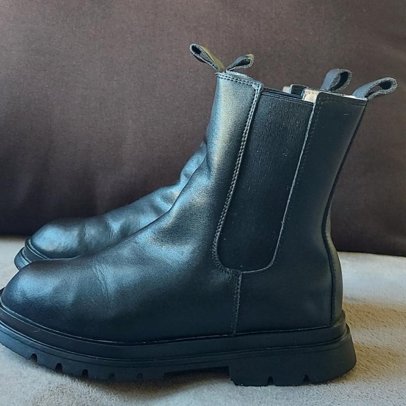 ботинки демисезонные кожаные с утеплителем. Длина стельки 24см. С двух сторон резинка, что позволяет легче надевать ботинки. В идеальном состоянии, одевали пару раз.