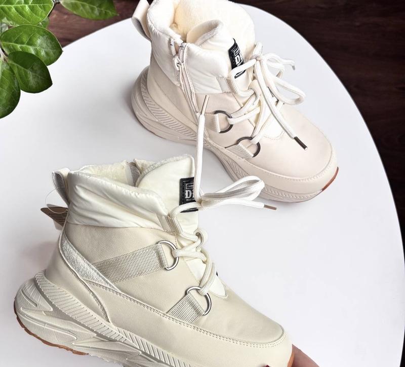 Верх еко шкіра. Всередині густе тепле хутро ( натуральна овчина 60%). Фіксація на шнурівку. Збоку є замочок. Антислизька підошва. Якість супер та легкі 34 - 22 см 35 - 22,7 см