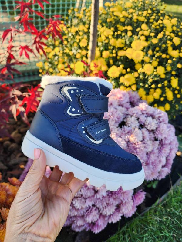 Новые ботинки Geox Willaboom. Оригинал из Германии СЕЗОННОСТЬ: зима от +2 до -10с разм.26. полная длина стельки 16.8см Geox - это обувь, которая дышит. Данная модель изготовлена с применением технологии Amphibiox tex – лучшей защиты от дождя и непогоды в сочетании с максимальной воздухопроницаемостью и естественной терморегуляцией. - Цвет: синий - Верх - сочетание замши с синтетическими материалами, укрепленных мембраной - Внутри термоутеплитель, похожий на барашка - Несмотря на характерные отверстия, усиливающие дышащие свойства обуви, резиновые подошвы во всех моделей Geox Amphibiox не пропускают влагу. Это стало возможным благодаря специальной мембране, микропоры которой больше молекулы водяного пара, но меньше молекулы воды. Дышащей водонепроницаемой мембраной оснащен и верх обуви. В обуви Geox Amphibiox ноги надежно защищены от дождя, снега и холода. - Фетровая стелька при дополнительном утеплении - Застежка – липучки - Наличие стабилизатора пятки, который плотно удержит пяточку на месте