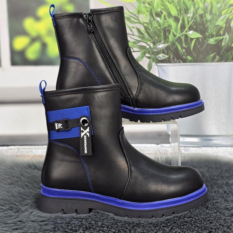 Ботинки детские для девочки y.top черные с синим демисезонные 5116