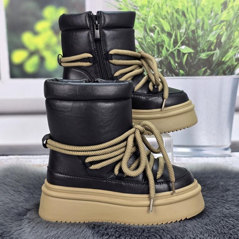 Зимние дутики для девочки Paliament выполнены из искусственной кожи чёрного цвета с бежевой подошвой. Внутри обувь утеплена натуральной овчиной, которая сохраняет тепло в холодный сезон. Подошва из ПВХ отличается повышенной толщиной и рельефом, обеспечивая устойчивость и комфорт при ходьбе. Модель застёгивается на боковую молнию и дополнена декоративной шнуровкой. Благодаря высокому голенищу и мягкой отделке эти дутики подойдут для зимних прогулок и повседневной носки. Основные характеристики Материал верха: искусственная кожа Материал подкладки: овчина Материал стельки: овчина Материал подошвы: ПВХ (поливинилхлорид) Тип подошвы: платформа, рельефная Высота подошвы: 4,5 см Высота модели: 17 см Сезонность: зима Особенности Боковая застёжка-молния Декоративная шнуровка по верху Тёплая подкладка из овчины Мягкий верх для комфортной посадки Размерная сетка модели 32 — 21 см 33 — 21,5 см 34 — 22,5 см 35 — 23 см 36 — 23,5 см 37 — 24 см Перед оформлением заказа уточняйте наличие размера!!! Замеры стельки делаем сами, вручную. Отправка Новой или Укрпочтой. Оплата осуществляется на карту Приват банка, или наложенным платежом, с минимальной предоплатой на доставку. Или же можете воспользоваться безопасной оплатой через Шафу.