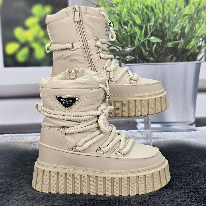 Зимние дутики для девочки Jong Golf выполнены из комбинации плащевки и эко-кожи в бежевом цвете. Внутри обувь утеплена натуральной овчиной, которая сохраняет тепло при низких температурах. Высокая конструкция и плотная шнуровка обеспечивают надёжную фиксацию ноги. Массивная подошва из ПВХ устойчива к износу и имеет выраженный протектор. Модель дополнена боковой молнией для удобства надевания. Эти дутики подойдут для зимних прогулок и повседневного ношения. Основные характеристики Материал верха: плащевка + эко-кожа Материал подкладки: овчина Материал стельки: овчина Материал подошвы: ПВХ (поливинилхлорид) Тип подошвы: платформа, рельефная Высота подошвы: 4–5 см Высота модели: 19 см Сезонность: зима Особенности Комбинированный верх (плащевка и эко-кожа) Боковая застёжка-молния Декоративная шнуровка Утеплённая подкладка из овчины Размерная сетка модели 32 — 20 см 33 — 21 см 34 — 21,5 см 35 — 22 см 36 — 23 см 37 — 23,5 см Перед оформлением заказа уточняйте наличие размера!!! Замеры стельки делаем сами, вручную. Отправка Новой или Укрпочтой. Оплата осуществляется на карту Приват банка, или наложенным платежом, с минимальной предоплатой на доставку. Или же можете воспользоваться безопасной оплатой через Шафу.
