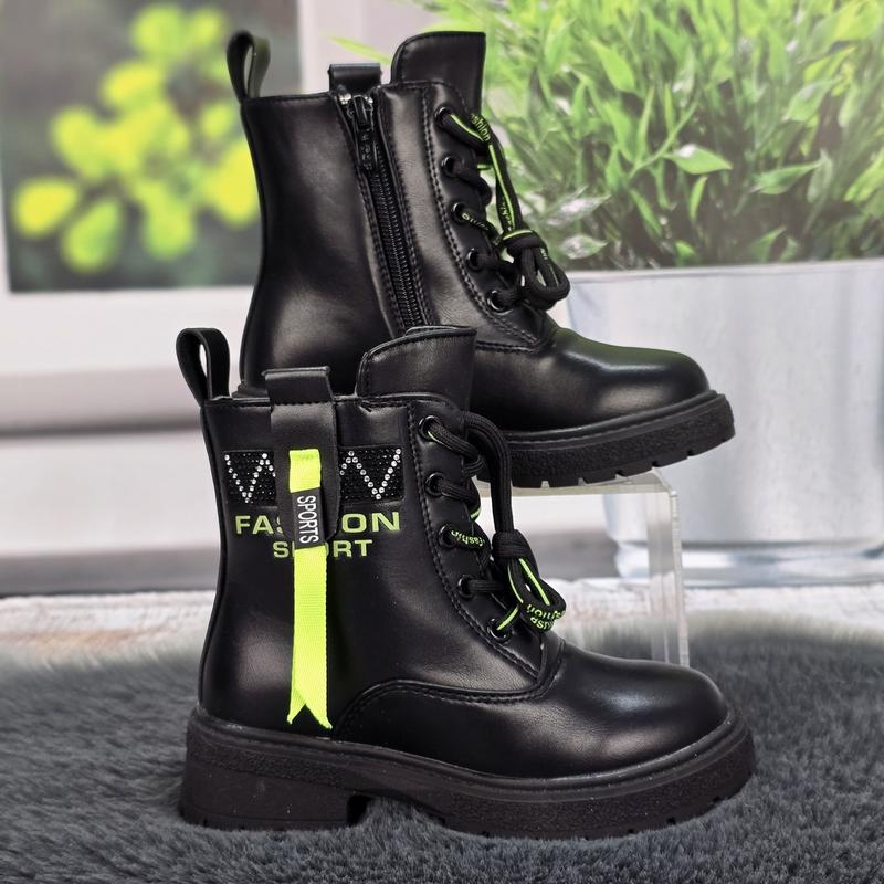 Демисезонные ботинки для девочки черного цвета с зелеными элементами. Верх обуви изготовлен из искусственной кожи. Подкладка и стелька — из флиса. Подошва из ПВХ имеет высоту 1,5-3 см, а высота голенища — 12-13 см. Ботинки имеют застежку-молнию и шнуровку. Декоративные элементы включают красную окантовку подошвы, а также блестящие красные вставки из камней. Основные характеристики: Материал верха: искусственная кожа Материал подкладки и стельки: флис Материал подошвы: ПВХ Сезон: демисезон Высота подошвы: 1,5-3 см Высота голенища: 12-13 см Тип застежки: шнуровка и молния Цвет: черный с зеленым Размерная сетка модели: 27 — 18 см 28 — 18,5 см 29 — 19 см 30 — 19,5 см 31 — 20 см 32 — 20,5 см Перед оформлением заказа уточняйте наличие размера!!! Замеры стельки делаем сами, вручную. Отправка Новой или Укрпочтой. Оплата осуществляется на карту Приват банка, или наложенным платежом, с минимальной предоплатой на доставку. Или же можете воспользоваться безопасной оплатой через Шафу.