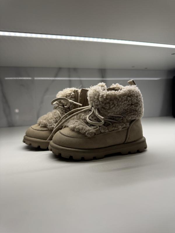 Неймовірно красиві пухнасті черевички для ваших принцес . Дуже зручні на шнурів ці та блискавці 22 розміру . Колір беж . Прекрасно підійде до ваших красивих осінніх та зимових луків 😍😊