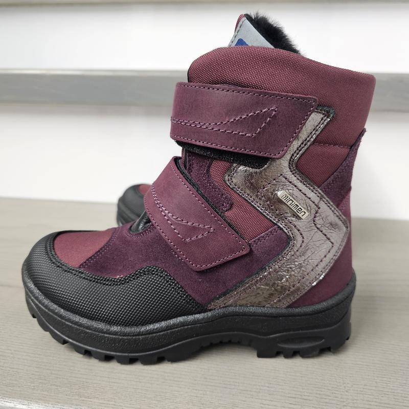 Новые ботинки Minimen. Детская ортопедическая обувь Minimen относится к лечебно-профилактической, что означает предупреждение и профилактику небольших ортопедических проблем. Внешне натуральная кожа, внутри натуральный мех, водонепроницаемые. Качество обуви Minimen позволяет носить ее при температурном режиме до -30*. Модель на липучках, подойдет для ножек с разным объемом и шириной. Ботинки не скользят благодаря ребристости подошвы, выполненной из термоэластопласта и имеют шипы, которые можно открыть и скрыть. Размеры и длина по стельке: 29-18.5см, 30-19см