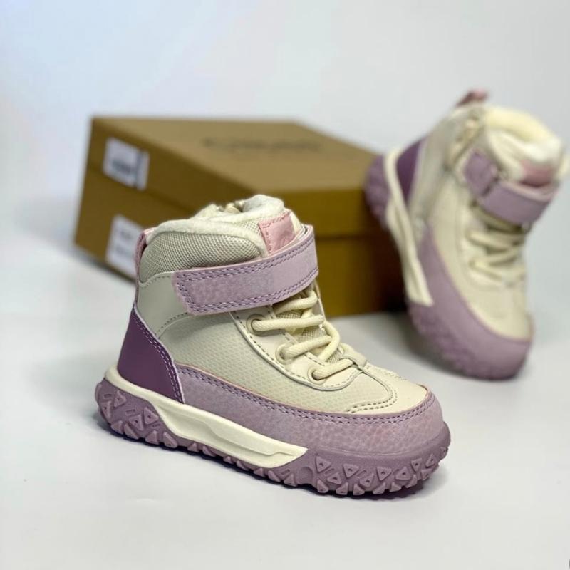 Ботинки детские зимние на липучке и замочке, для девочки,молочные с лавандовым,очень легки...