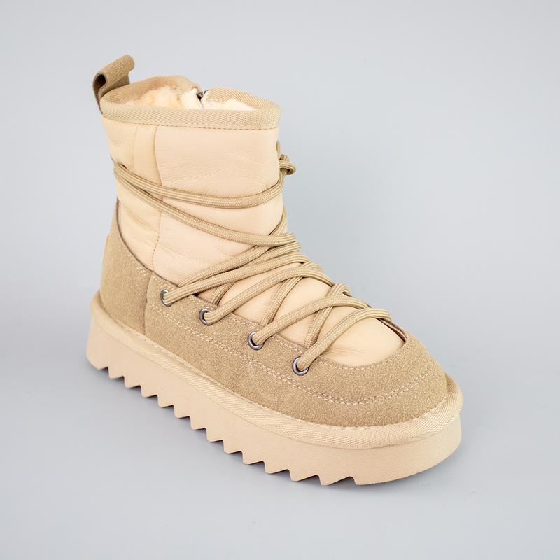 Верх: натуральная кожа Внутренняя подкладка: мех Стелька: утепленная Высота подошвы: 3 см Вес: 340 г Цвет: бежевые Виробник: Китай Размерная таблица: Длина стельки 32 размер 21,5 см 33 размер 22 см 34 размер 22,5 см 35 размер 23 см 36 размер 23,5 см 37 размер 24 см
